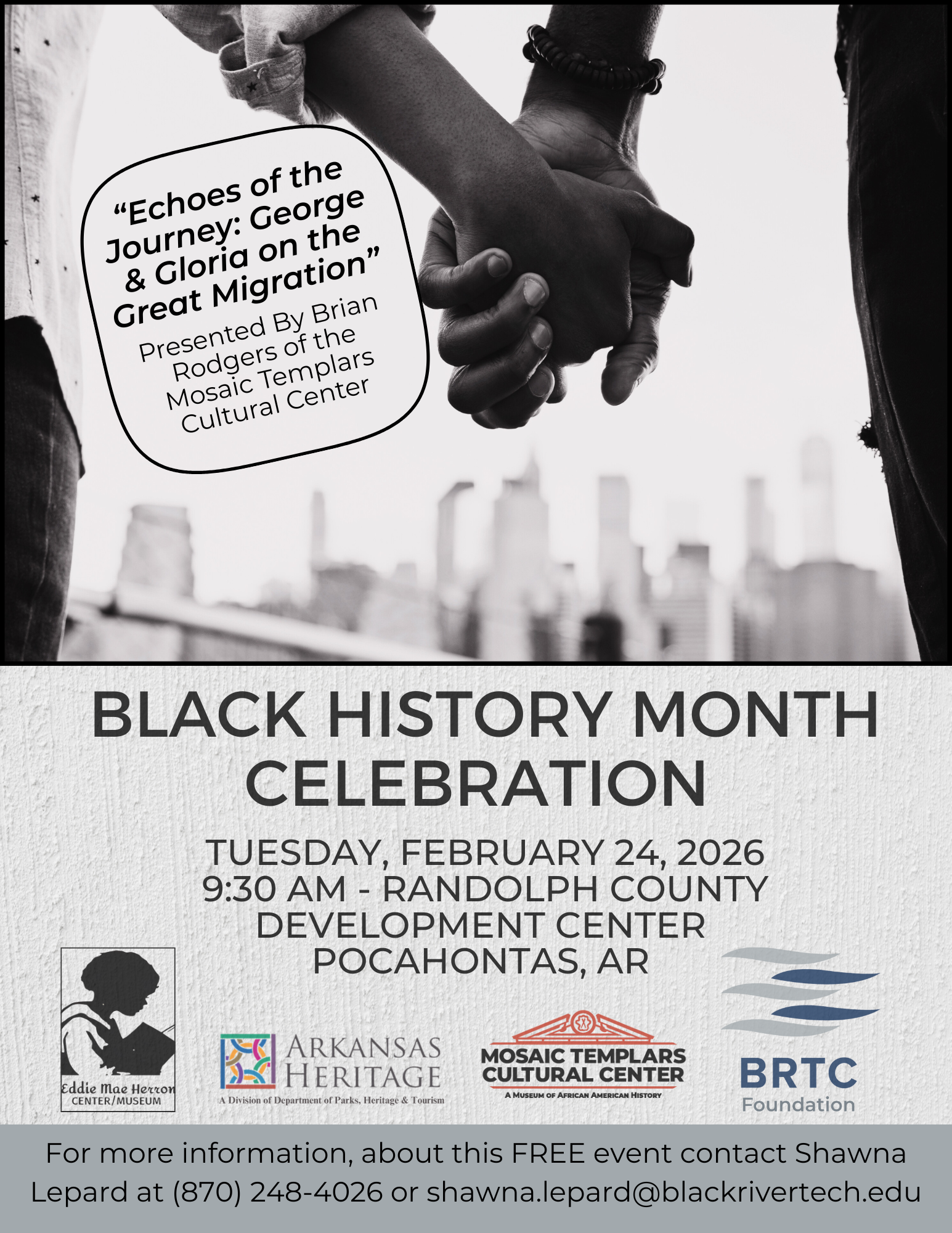 The Eddie Mae Herron Center is collaborating with Black River Technical College to bring The Great Migration Black History Month presentation to campus.